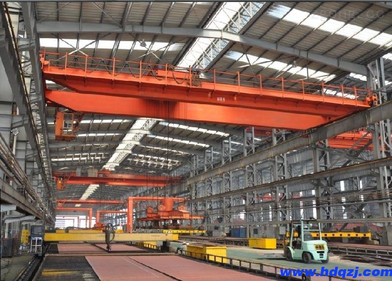 當(dāng)橋式起重機在高溫環(huán)境或有腐蝕性氣體的環(huán)境中工作時,會降低金屬材料的屈服強度,高溫環(huán)境條件下,還將產(chǎn)生溫度應(yīng)力,這增加了主梁變形的可能性。在高溫環(huán)境中工作的橋式起重機直接受高溫輻射部分應(yīng)設(shè)隔熱板等,如主梁和起重橫梁,下翼緣板下應(yīng)設(shè)有可靠的隔熱裝置。在腐蝕環(huán)境中工作的橋式起重機應(yīng)做好金屬結(jié)構(gòu)的防腐措施,盡量減少焊縫、表面損壞及劃痕。