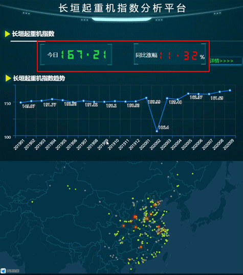 長(zhǎng)垣起重機(jī)指數(shù)主要依據(jù)《GB/T 3811-2008 起重機(jī)設(shè)計(jì)規(guī)范》、《GB/T 28264-2017 起重機(jī)械安全監(jiān)控管理系統(tǒng)》,借助物聯(lián)網(wǎng)技術(shù),通過機(jī)載控制器、傳感器和無線通訊模塊,將起重機(jī)的實(shí)時(shí)工作數(shù)據(jù)回傳到“長(zhǎng)垣起重機(jī)指數(shù)分析平臺(tái)”,利用大數(shù)據(jù)技術(shù),實(shí)時(shí)分析起重機(jī)工作數(shù)據(jù),再對(duì)數(shù)據(jù)賦予科學(xué)的權(quán)重比例計(jì)算得出,指數(shù)的平均值為150。 隨著我國(guó)統(tǒng)籌推進(jìn)疫情防控和經(jīng)濟(jì)社會(huì)發(fā)展各項(xiàng)工作,疫情防控形勢(shì)持續(xù)向好,復(fù)工復(fù)產(chǎn)加快推進(jìn)。長(zhǎng)垣起重機(jī)指數(shù)已從2月份的106.4上升到8月份的167.2,表明疫情之后中國(guó)經(jīng)濟(jì)復(fù)蘇態(tài)勢(shì)明顯,龍門吊逆水行舟動(dòng)力足!